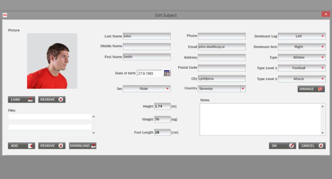 Athletes are often assessed several times in just one season. The ARS subject management unit is a simple interface to determine project, visits and subjects. This structure further allows a direct comparison among visits for one subject or between two or more athletes within the same visit.
